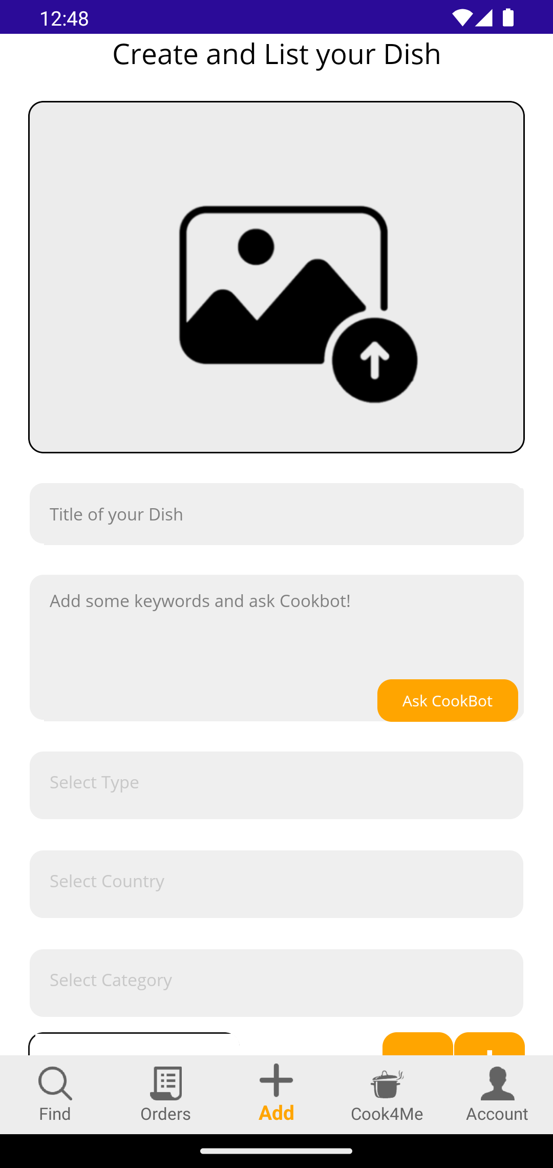 • Test overall usability of the App. (For example, is it friendly, are the processes to list a dish simple to understand and follow...)