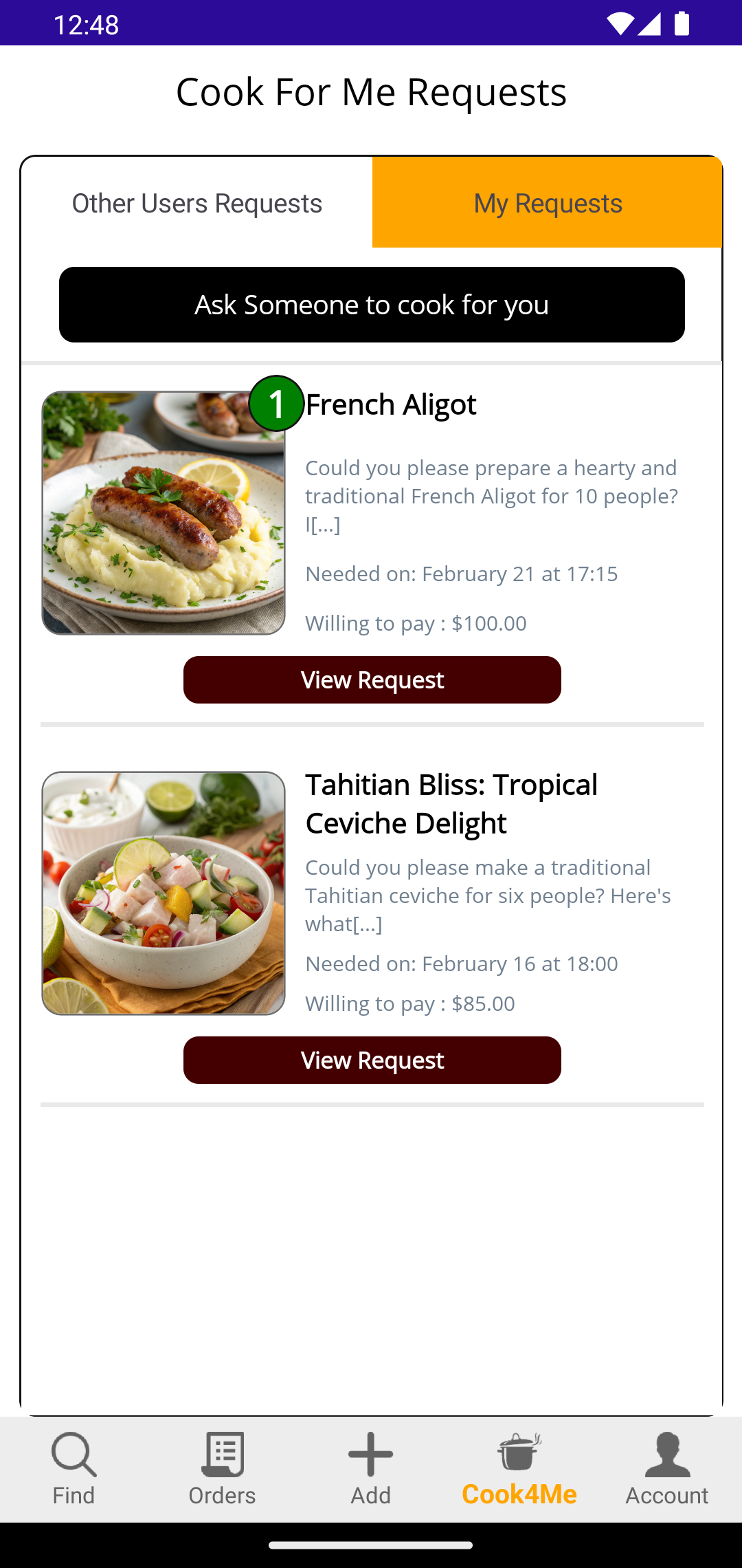 • Review and feedback on the user experience to list a Cook4Me request, manage it, get notifications, view proposals, accept proposal, pay for it and complete the order.*